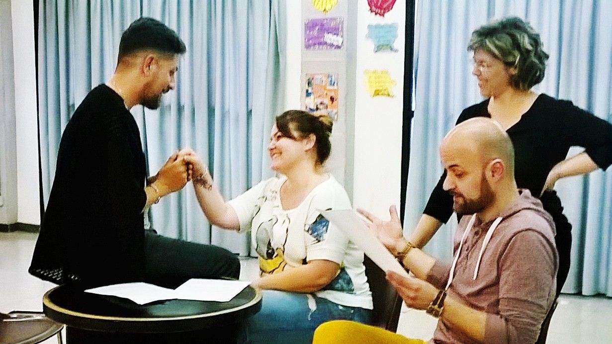 Los jueves están llenos de trabajo e ilusión en Art en Acció. Aquí nos tenéis preparando a tope nuestro próximo proyecto que verá la luz muy pronto. Continuando con nuestra filosofía de conjugar el teatro y las habilidades sociales, seguimos apostando por puestas en escena que nos hagan buscar, y más aún descubrir… el lado bueno de vivir.